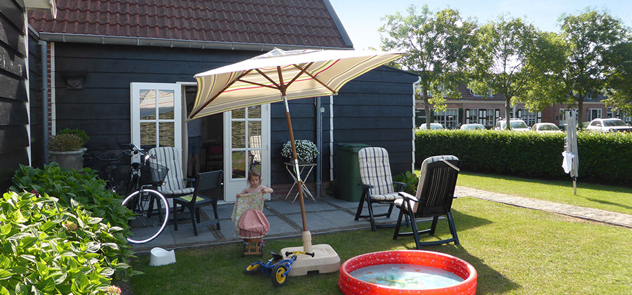 Zur Wohnung gehört ein großer Garten mit Terrasse,